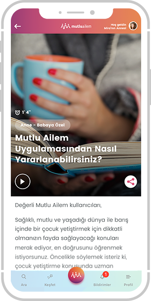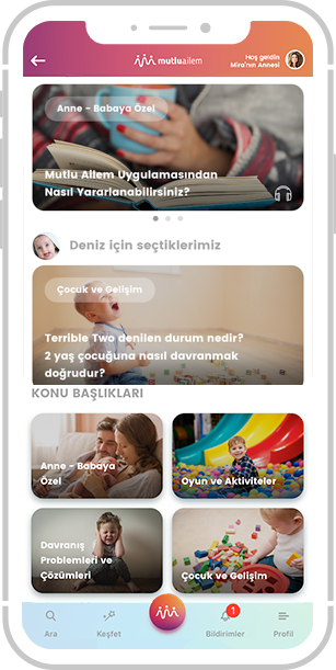 Kullandıkça gelişen, çocuğunuzun yaşına ve güncel gelişmelere paralel olarak özgünleştirilen bildirimler. Sizi hem motive edecek hem de aileniz için güzel şeyler yapmaya ilham olacak.